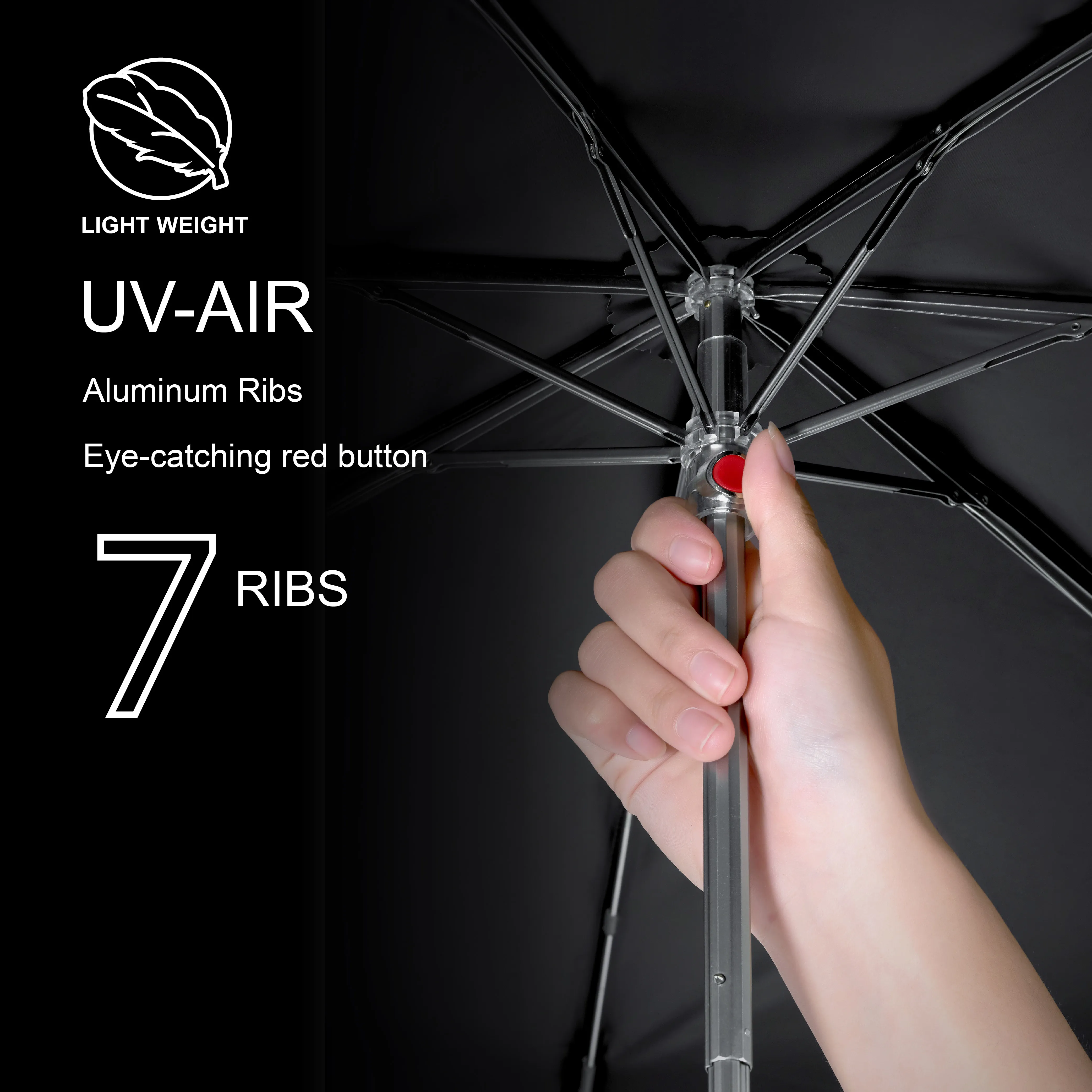 Built with a full aluminum frame and 7 ribs, this umbrella balances strength with weight. The sturdy structure resists bending while remaining light, providing reliable protection in both sunny and breezy conditions. The ergonomic plastic handle ensures a comfortable, secure grip for effortless use.
