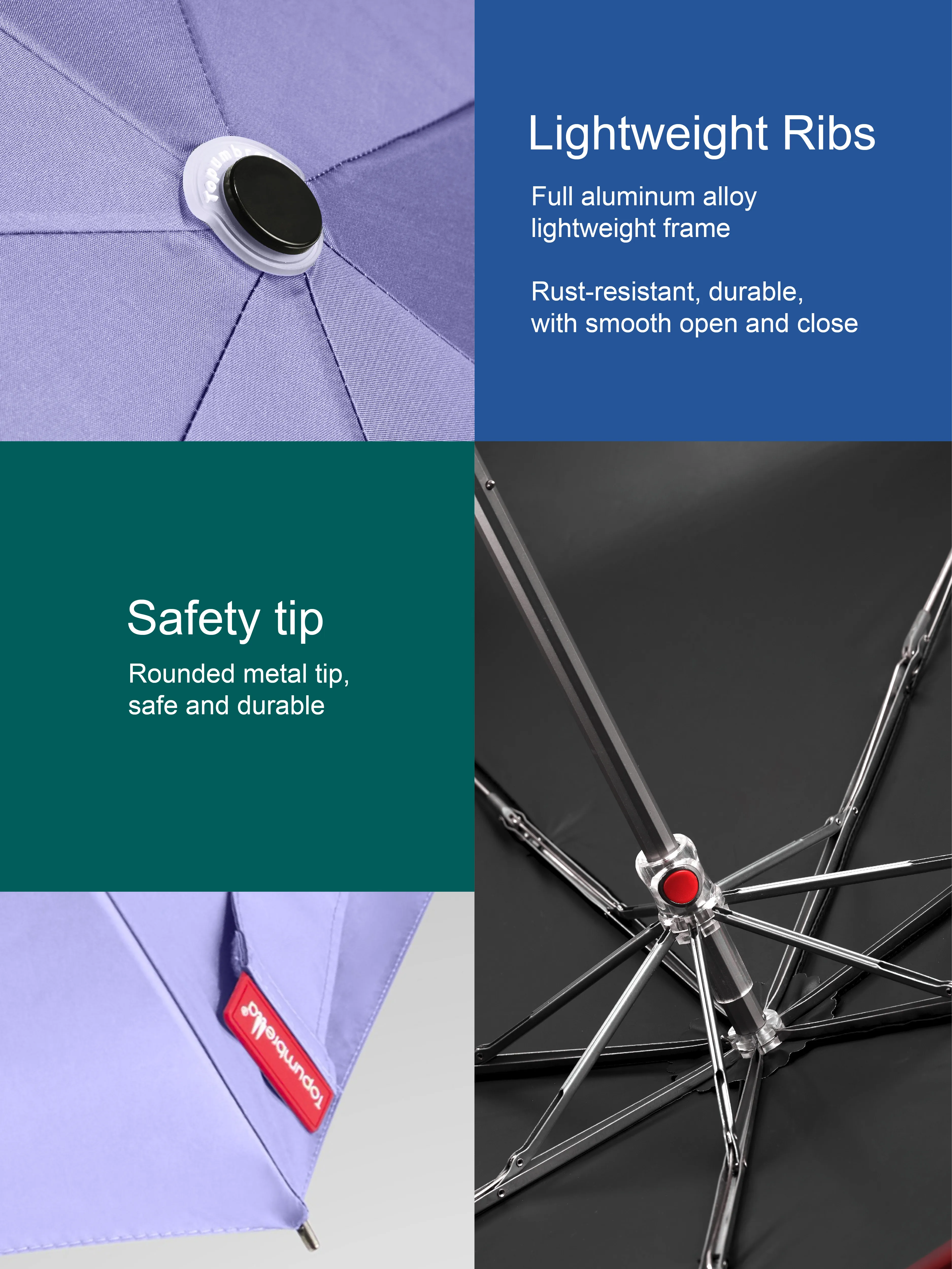 Weighing just 255 grams, this umbrella is easy to carry in any bag, tote, or backpack. The three-fold design ensures compact storage without compromising coverage when opened. Its lightweight structure makes it ideal for commuting, travel, or everyday errands.