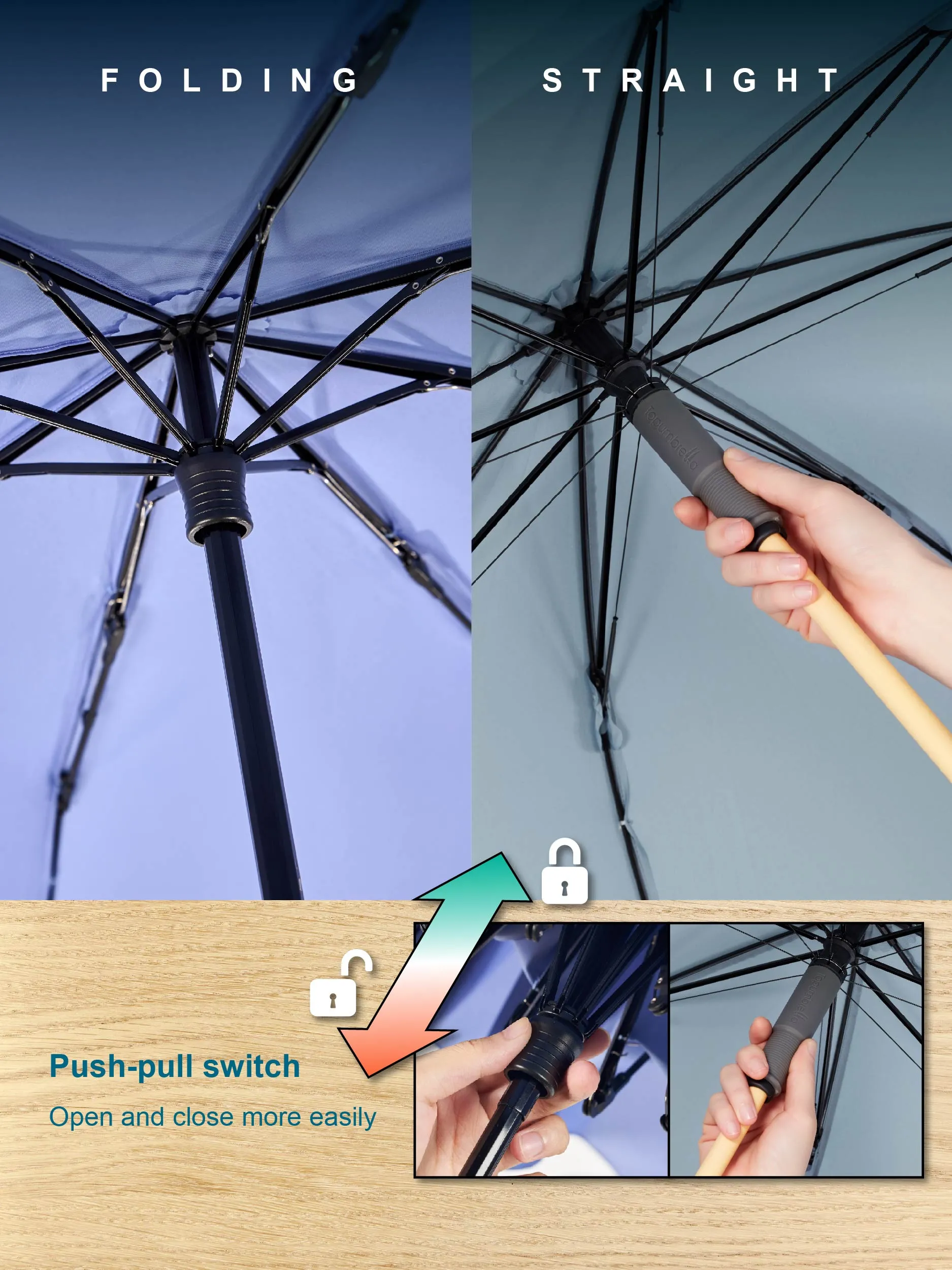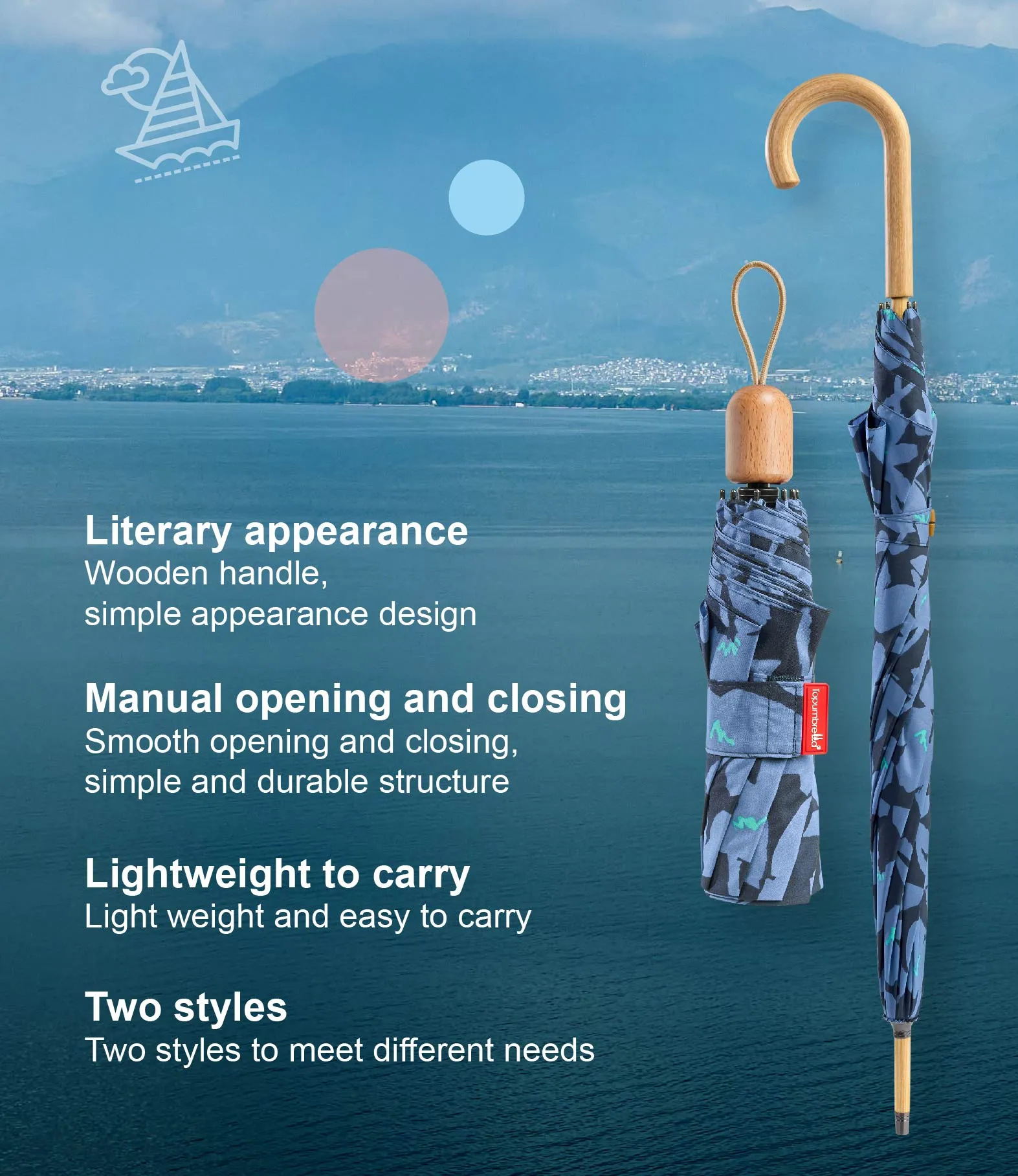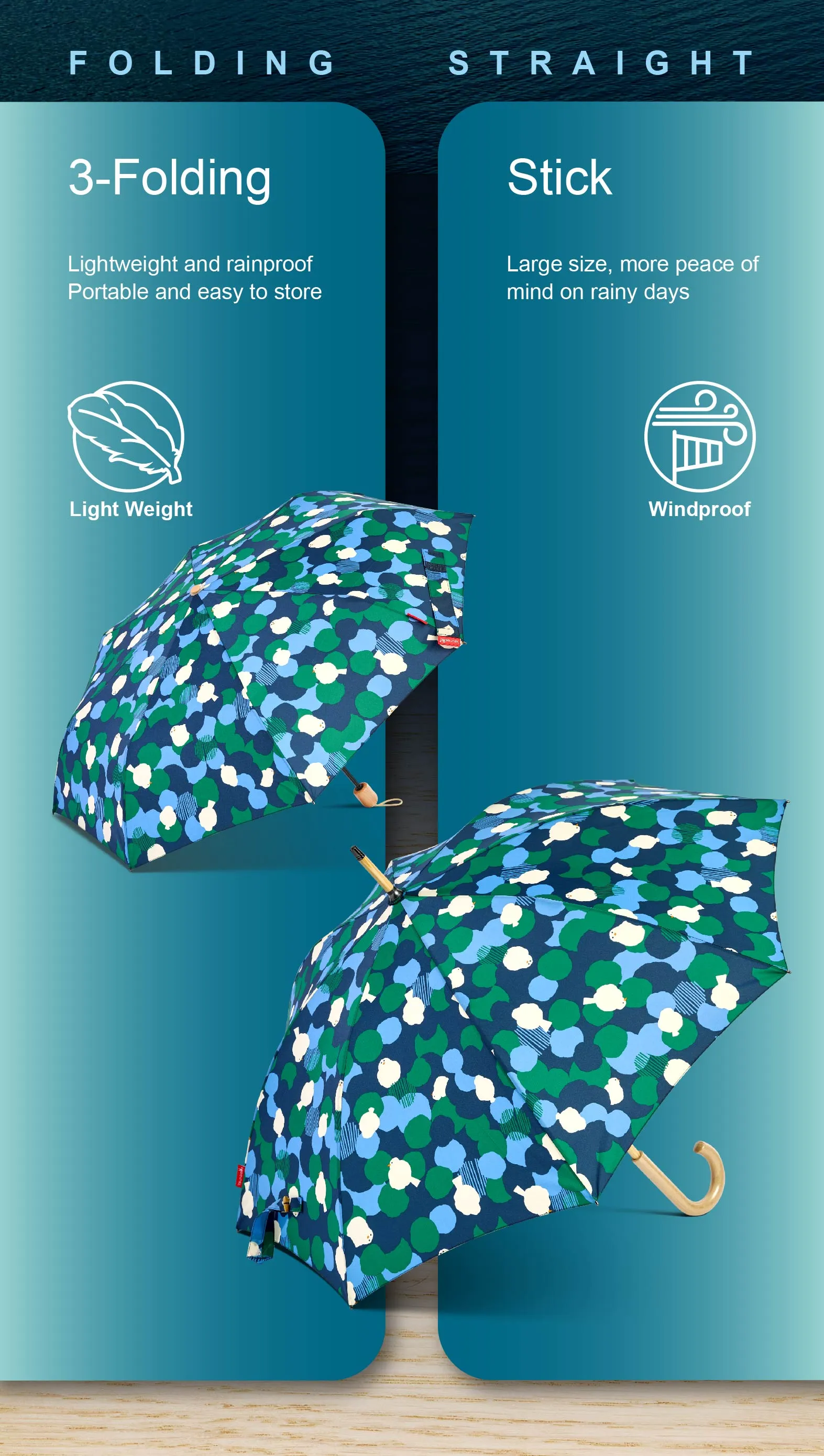 Whether you prefer the portability of a manual three-fold umbrella or the timeless simplicity of a manual stick umbrella, both versions share the same environmentally conscious mindset. Smooth manual opening, comfortable handling, and practical weight make them ideal for daily use.