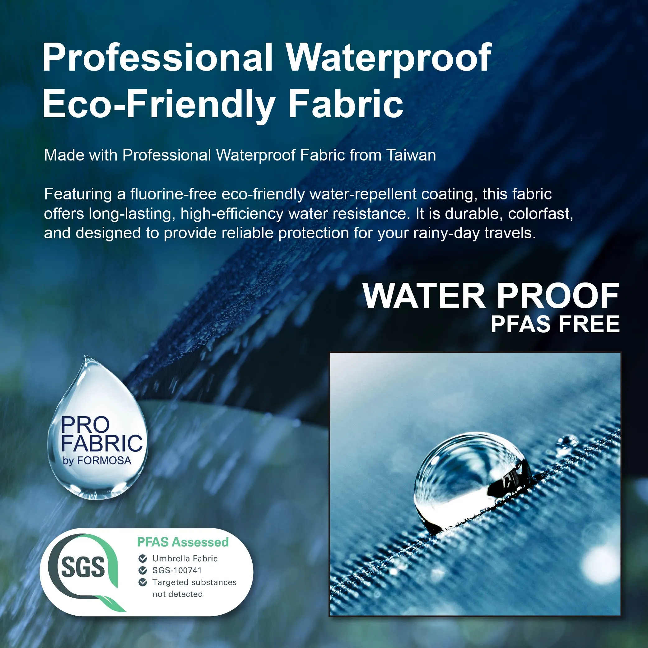 This collection starts with sustainability at its core. The canopy uses Taiwan-manufactured PFAS-free water-repellent fabric — a cleaner alternative that avoids harmful chemical coatings while maintaining reliable protection in everyday weather. Paired with an eco-friendly umbrella cap, every detail reflects a commitment to better materials and better impact.