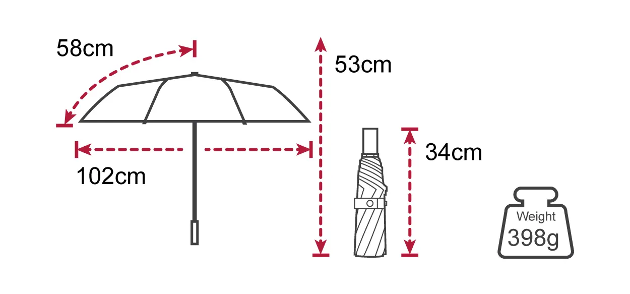 Auto open & close (AOC) | 102cm diameter when open | Weight approx. 398g