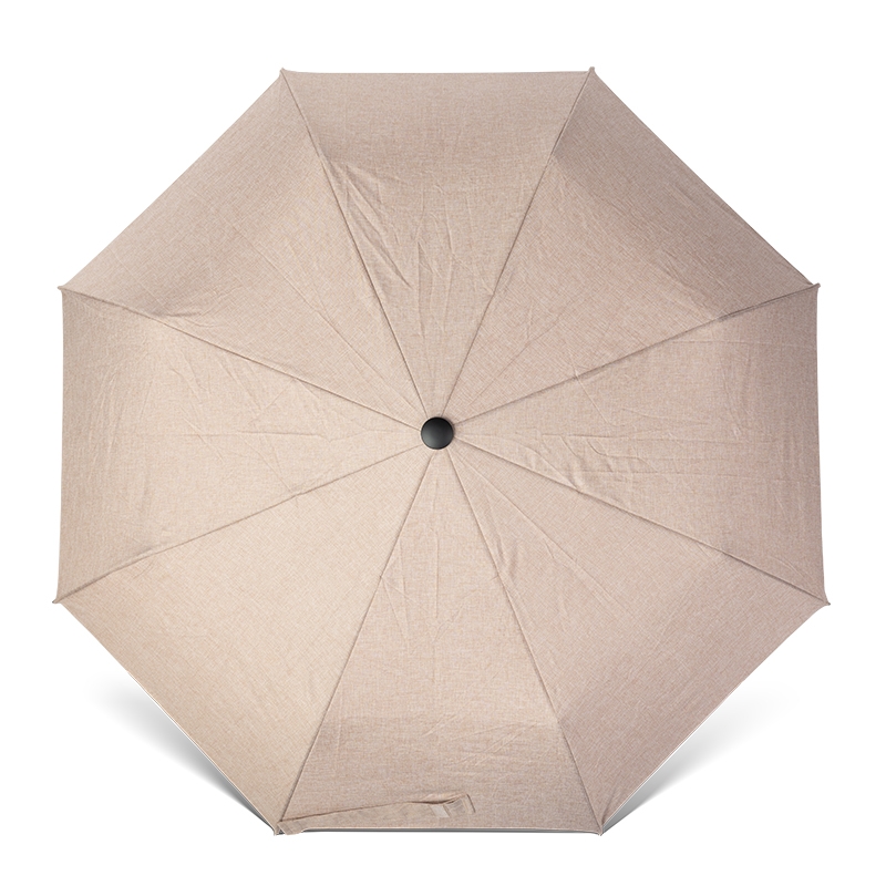Most folding umbrella canopies are a flat, single-tone colour. You pick a colour, you get that colour, and every panel looks the same. The 190T Pongee mixed yarn fabric on this umbrella is woven from heathered yarn — two or more yarn colours twisted together before weaving — which gives the canopy a subtle depth and texture that reads as noticeably more premium than standard solid-dye fabric at the same thread count. It's the same visual quality difference you'd notice between a plain cotton t-shirt and a heathered jersey one. Closed, the umbrella already looks like it belongs to a considered product range rather than a generic promotional item. Open, the canopy has a surface quality that holds up under scrutiny in a way that flat dye fabric often doesn't. For brand merchandise programmes, this matters: the product's appearance on first contact sets the tone for how the brand is perceived. For personal gifts, it's the difference between something that looks chosen and something that looks ordered in bulk.