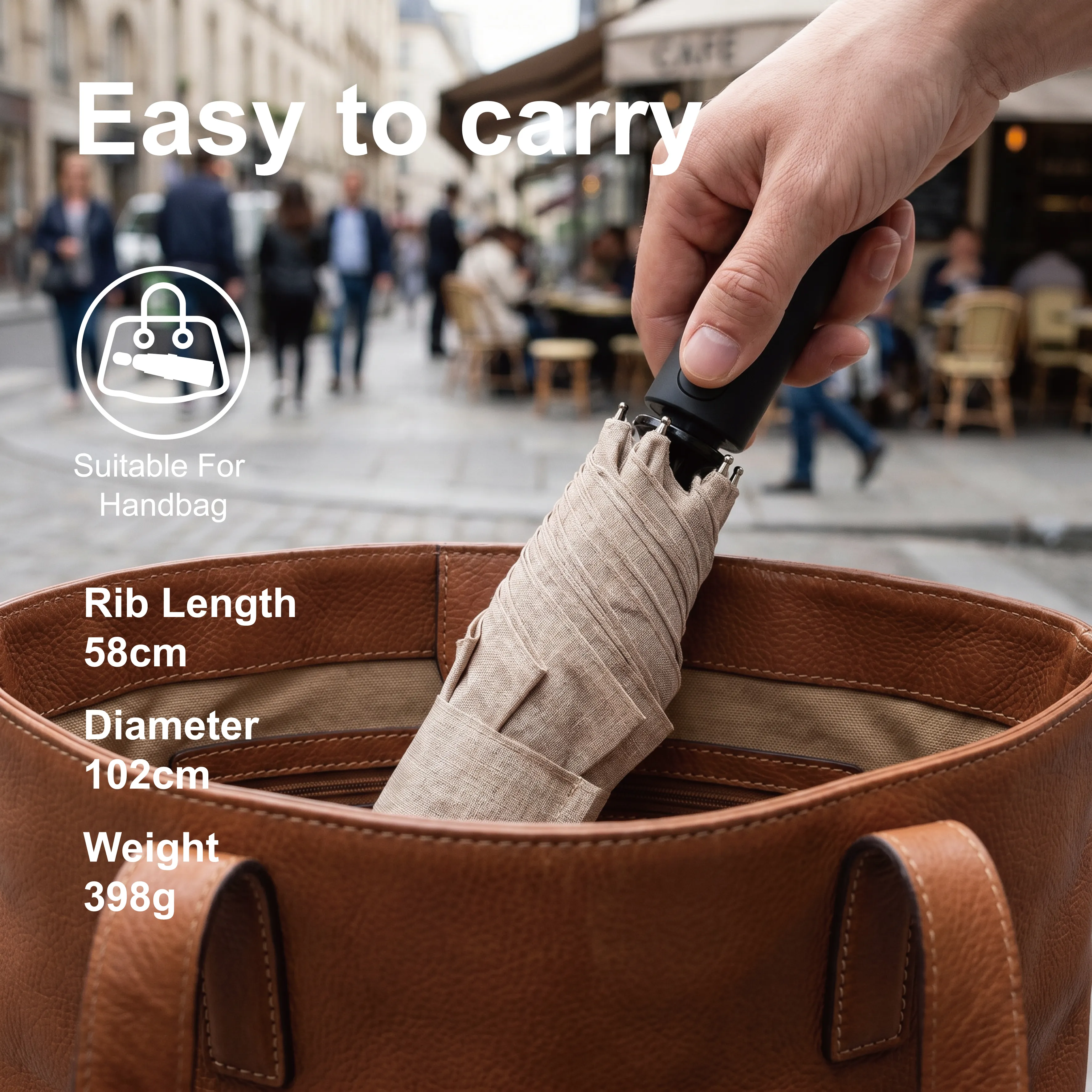Lightweight yet wind-resistant, sharing the same sturdy frame as our stick umbrellas but designed for ease of carrying—perfect for urban explorers.